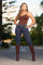 Skinny jeans de tiro 3/4 con 3 botones en pretina delantera. Jeans con colgante. Hechos con tela super stretch para mayor comodidad y flexibilidad. Sin bolsas traseras, ofreciendo un diseño limpio y moderno. Un pantalón hecho para realzar las curvas femeninas.